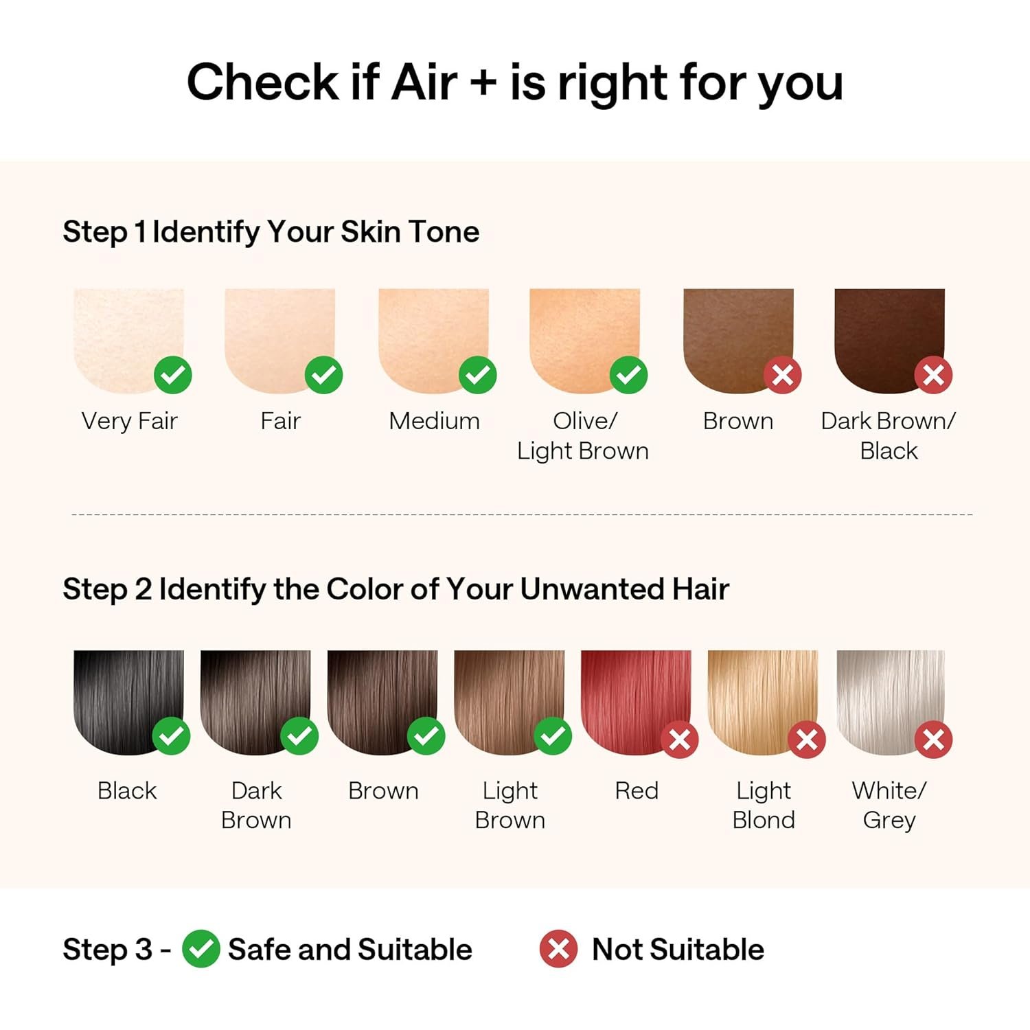 The device is optimized for light to medium skin with dark hair. It’s less effective on white, blonde, or red hair and unsuitable for very dark skin tones. For detailed info, check the safe IPL system advice in our safety guide. - Does it hurt?